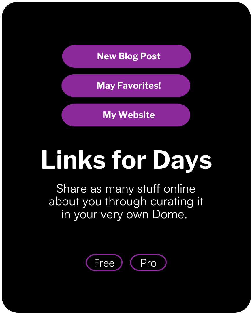 We know that one link in bio is never enough. My Dome offers unlimited opportunities to share yourself to the world.